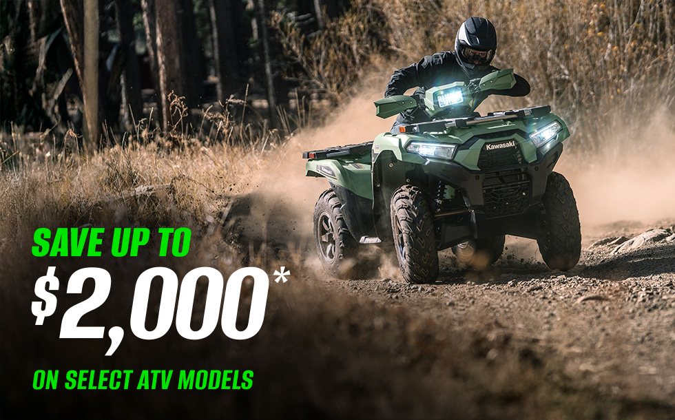 *Model & year exclusions apply. May be combined with promotional retail financing rates. Incentives are available at participating Kawasaki dealerships. Offer valid through 03/31/2026. Subject to change without notice. Offer available on approved purchases of select new unregistered Kawasaki vehicles.
